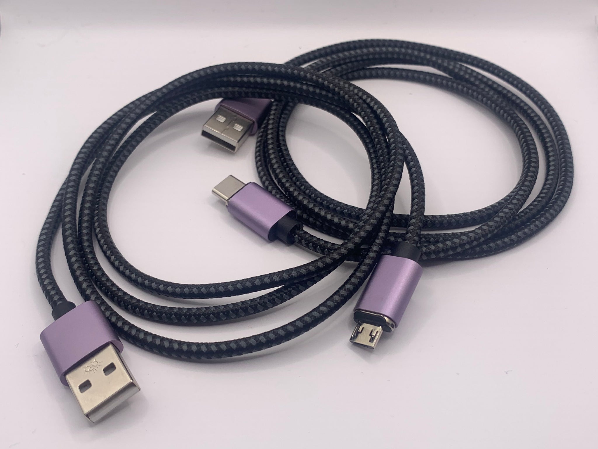 These braided USB A to USB C/micro and lightning cables come in a pack of two
